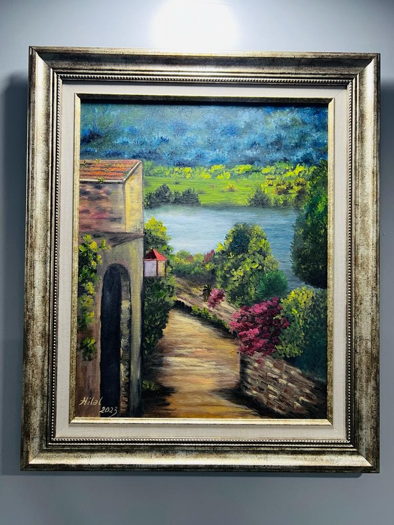 Yağlı boya tamamı el işçiliği manzara resmi. Birinci sınıf kalitede çerçevesi ile birlikte.